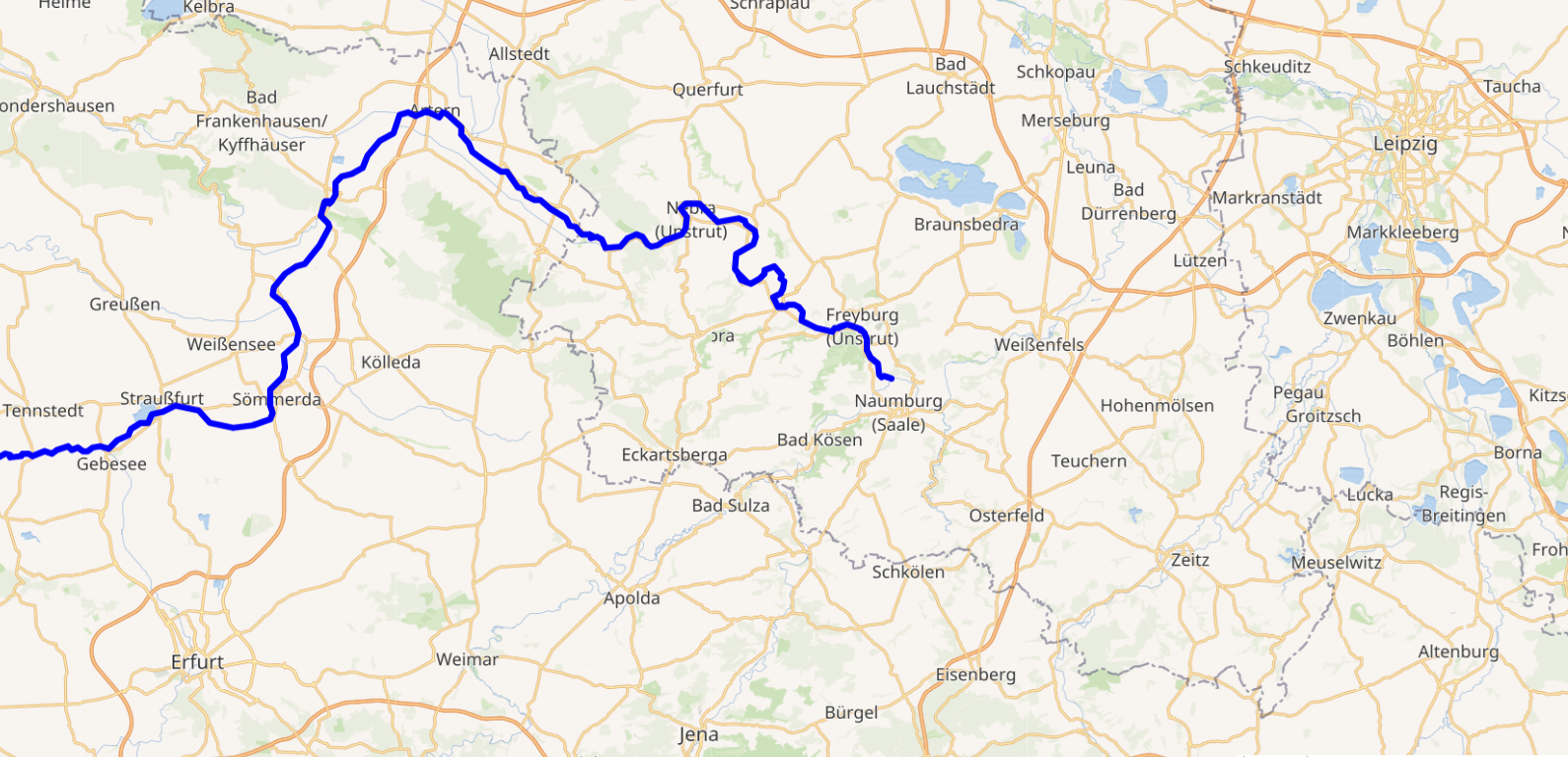 (운슈트루트강은 저 멀리 서쪽 튀링겐에서 발원하여 나움부르크 및 바트 쾨센 인근에서 잘러강과 합류하는 잘러강의 지류입니다.)