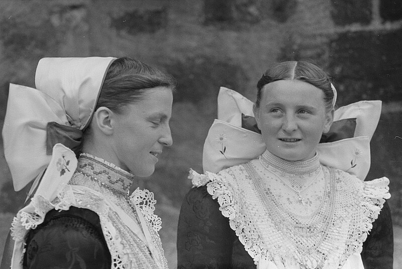 (작센과 폴란드, 체코 사이에 걸친 지역을 루사티아(Lusatia, 독일어로는 라우지츠(Lausitz))라고 하고, 그 일대에 사는 서부 슬라브계 민족을 조르벤(Sorben)인이라고 합니다. 이들은 원래 독자적인 언어와 정체성을 가진 민족이었으나, 17세기 이후 독일계에 동화되기 시작하여 20세기 초에는 사실상 민족의 정체성이 사라지고 모두 독일어를 쓰게 되었다고 합니다. 사진은 1950년에 작센 바우첸(Bautzen)에서 촬영된 전통 복장 차림의 조르벤 여성들입니다.)