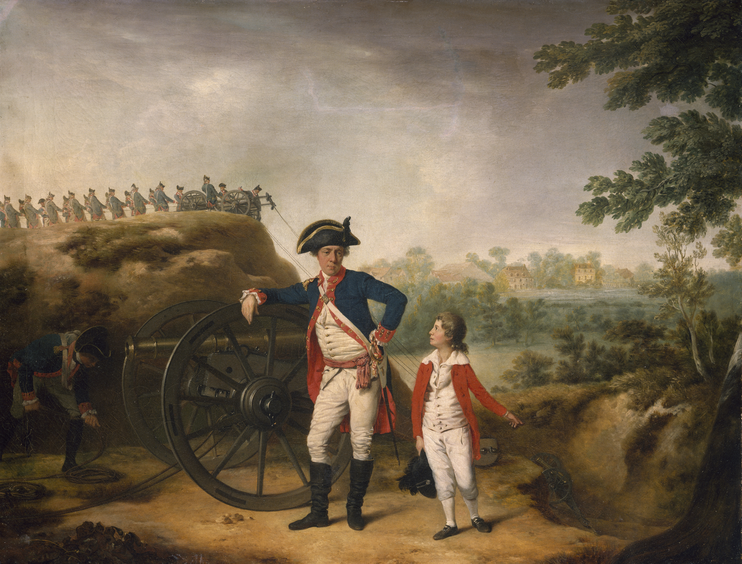(아들 콘그리브가 10살 때이던 1782년 그려진 아빠 콘그리브와 아들 콘그리브의 모습입니다. 당시 아빠 콘그리브는 포병 대위였습니다. 고작 대위 나부랭이가 아들과 함께 이런 그림을 발주할 수 있었던 것은 물론 콘그리브가 남작이었기 때문이었습니다. 대위라고 다 같은 대위가 아닌 거지요. 저 아빠 대위가 기대고 있는 대포는 8파운드 포입니다. 당시 대포 중 거의 가장 작은 것입니다.)