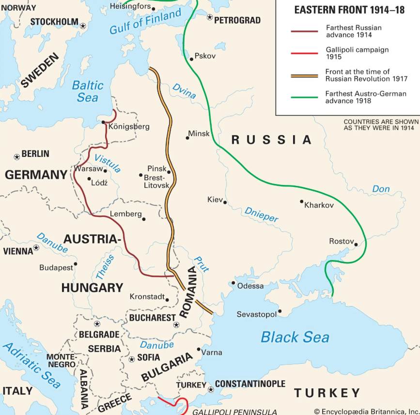 (결국 갈리폴리 전투때까지도 독일은 오스만 투르크에게 무기를 다량으로 공급할 방법을 찾지 못했음. 그러나 일부 물자는 당시 오스트리아 영토였던 크로아티아의 폴라(Pola, Pula) 항구로 보낸 뒤 거기서 야음을 틈타 어찌어찌 이스탄불로 보내기는 했음. 저 루트는 소형 잠수함인 UB-14를 분해하여 열차에 실어보낸 경로.)