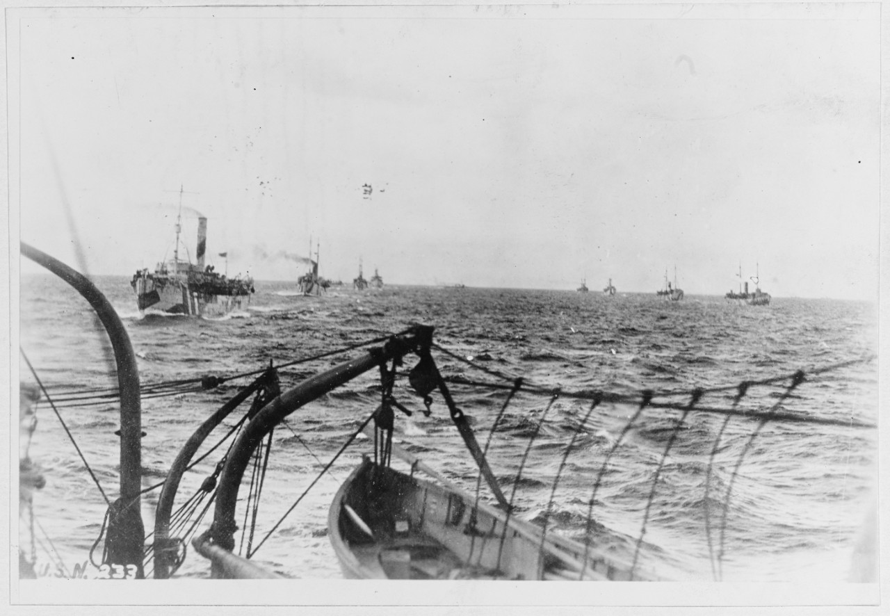 (이건 WW1 당시 북해 기뢰 봉쇄 작전에서 기뢰를 부설하는 중인 미국 선박들. 이들은 총 15회에 걸쳐 기뢰를 부설했는데, 처음에는 조심스럽고 느렸지만 가면 갈 수록 능숙해져서 나중에 제10회 부설 작업시에는 10척의 선박이 단 3시간 50분 만에 5,520기의 기뢰를 부설. 이렇게 빨리 부설할 수 있었는데 왜 5개월 동안이나 진행하고도 완료를 못했을까? 그건 기뢰를 부설하는데 시간이 오래 걸렸기 때문이 아니라, 그 정도로 많은 기뢰를 생산하는데 시간이 많이 걸렸기 때문.)